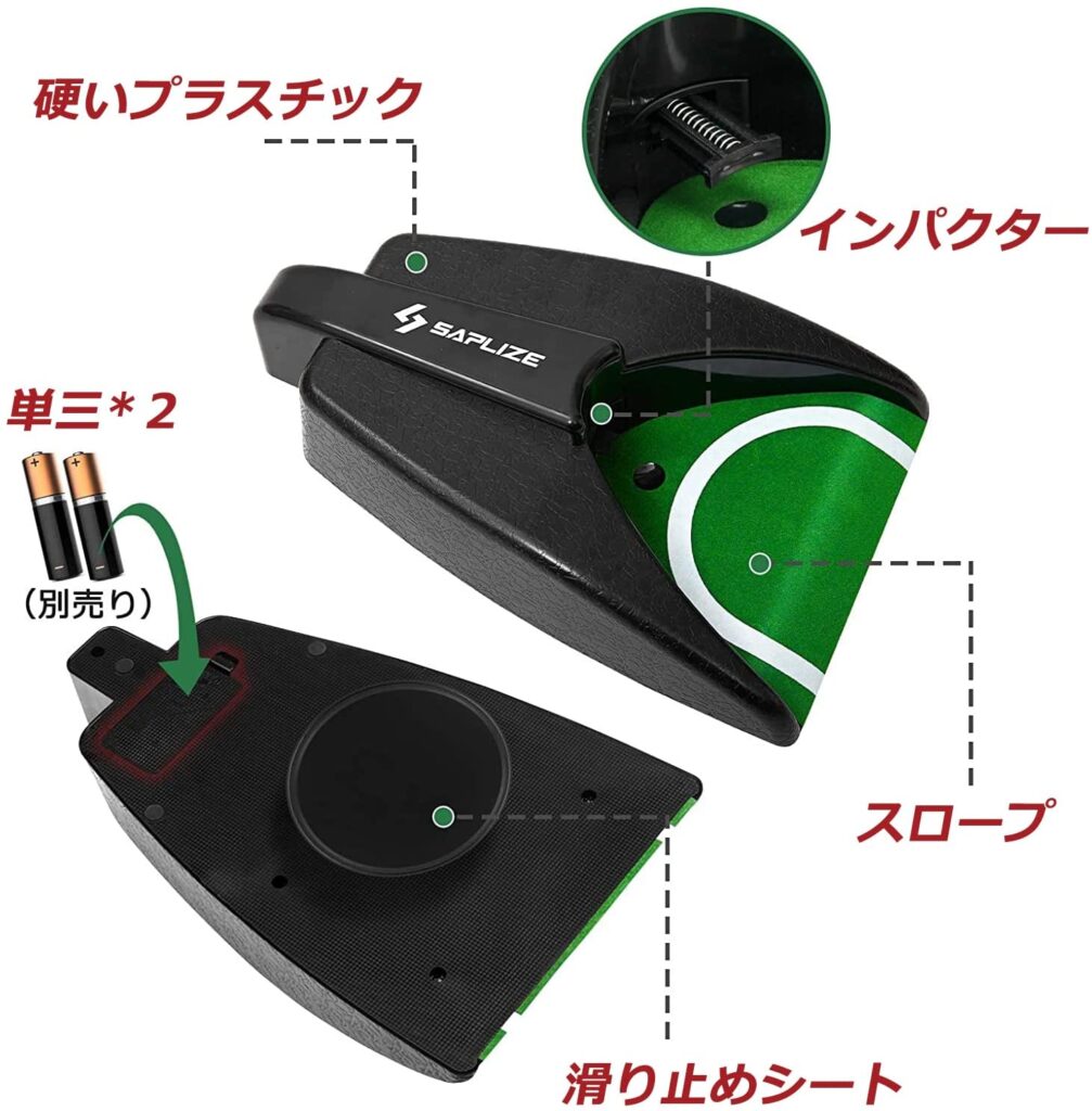 ボールマーカー・自動ボールリターナー付きゴルフパター練習用マット